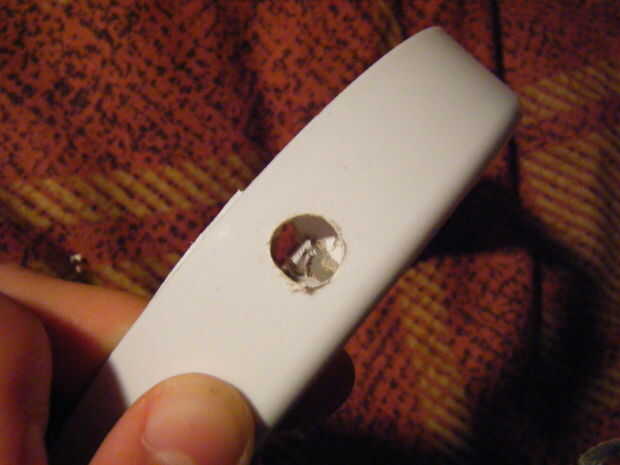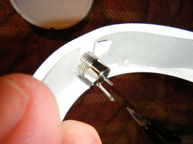 También vamos a hacer este humor ligero operables mediante un transformador de corriente de pared. Taladre un agujero con una broca del mismo tamaño el diámetro de la toma de corriente DC. Luego enroscar hasta que quede al ras con la carcasa.