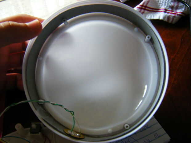La última modificación que tenemos que hacer aquí es agregar el sensor de grifo piezo. Es mejor montar en el plástico borde para mayor sensibilidad. Lo tengo en la foto más adelante en este instructable montado en otros lugares, pero eso es sólo porque he tenido que abra y cierre la cubierta durante la prueba en tanto que los cables comenzaron a romper. Simplemente caliente pegue al plástico, pero asegúrese de que no dificulta el movimiento mecánico en la bóveda de movabke! (es decir, no deja palo fuera demasiado).