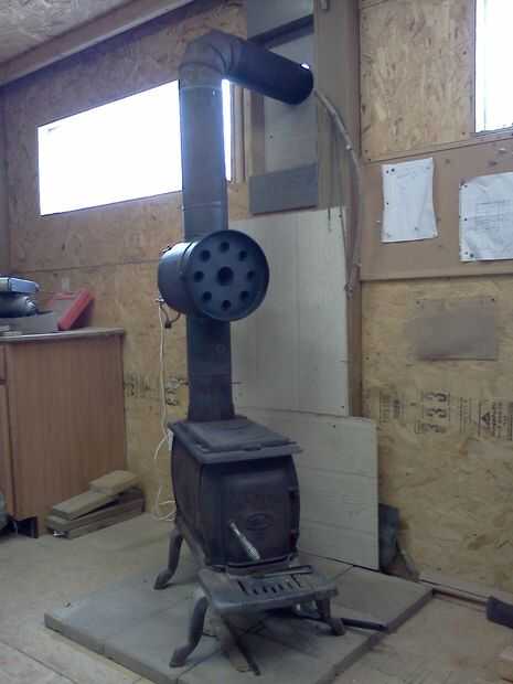 Estoy usando un boj Vogelzang estufa para calentar mi tienda. Es la estufa más pequeño hacen. Mi tienda las dimensiones son 32 x 16'. Está aislada con batería de fibra de vidrio R-13 en 3 paredes y R-19 fibra de vidrio en el techo. La cuarta pared, 32' de longitud, no está aislada, debido a la ubicación de mi tienda. (debajo de la cubierta de una gran despliegue del patín de Half-pipe). La estufa se encuentra en el centro de la tienda adyacente al exterior, aislado de la pared. Utilizado paneles de revestimiento de concreto, montados sobre soporte de madera, para proteger las paredes contra el calor de la estufa. Puesto que la tienda es larga y estrecha, siempre he usado otro ventilador, situado cerca del extremo de la tienda, para ayudar a circular el calor uniformemente a través del espacio.
