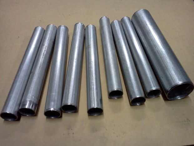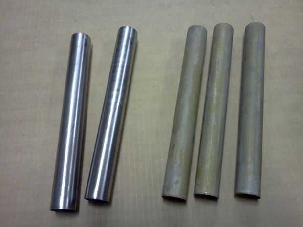 Los tubos de guía que utilicé fueron galvanizados. El recubrimiento de Zinc sobre los tubos debe ser extirpado antes de que las piezas se pueden soldar con seguridad. Respirar los humos de la quema de Zinc puede causar enfermedad. Normalmente utilizaría un molino para extraer el cinc solamente en el área de soldadura. Ya que esta cosa va a estar bombeando aire en mi espacio de trabajo, yo quería estar seguro y retire todo el Zinc que en el lado seguro. La forma más sencilla que pude subir con era utilizar ácido muriático. Puse todas las piezas de tubo en un cubo con agua suficiente para cubrirlos todos, cerca de 2 galones. Entonces derramé en 2 tazas de ácido muriático. He dejado las pipas para disfrutar al aire libre. Después de unas 2 horas el galvanizado había levantado el acero y estaba flotando en la parte superior del cubo. Me había aclarado las pipas con agua y había secado. Neutralizó la solución restante con una caja de bicarbonato de sodio antes de descartarlo.