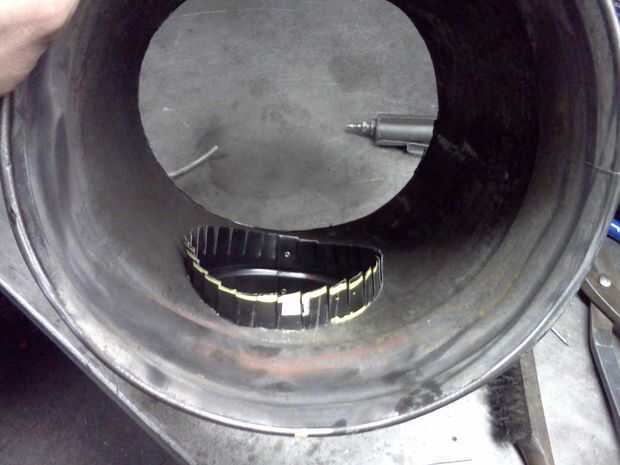 Ahora es el momento de repetir este procedimiento en el lado opuesto del cubo. Tenga cuidado de alinear la entrada de la chimenea con la salida de la chimenea, para asegurarse de que la unidad se ajuste correctamente en su lugar.