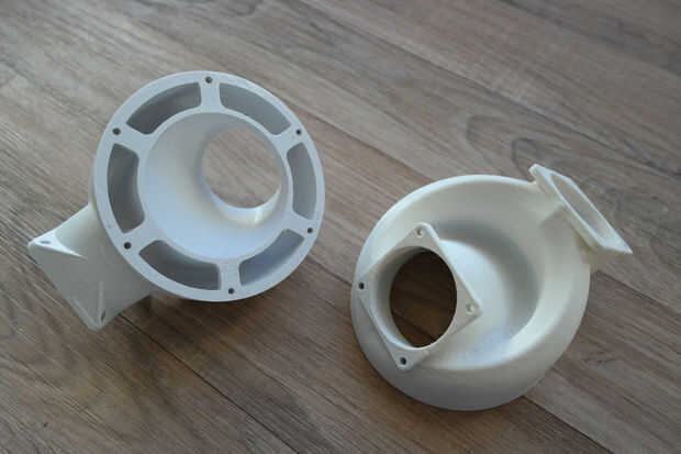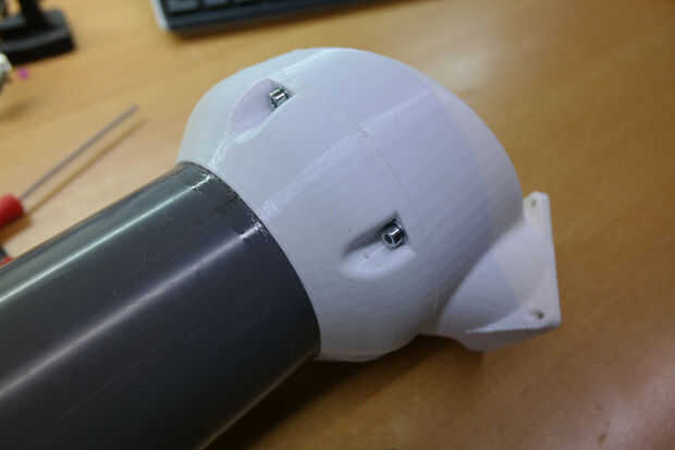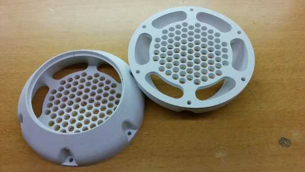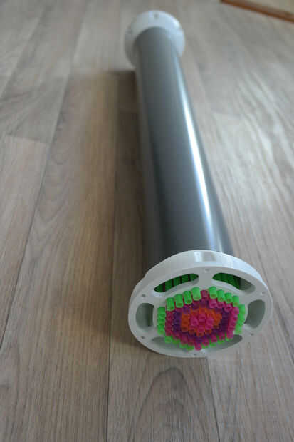 El intercambiador de calor impreso parcialmente 3D tiene todas las piezas complejas impreso. Estos son los tapones, adaptadores y cubiertas. El marco principal del intercambiador es un tubo de PVC. Para los que quieran duplicar el diseño, es un tubo de PVC de 90mm y me atrevo a cualquier persona a encontrar en una ferretería normal. Desordenado y diseñado este intercambiador de calor de alrededor de un tubo que sólo está disponible en internet.
