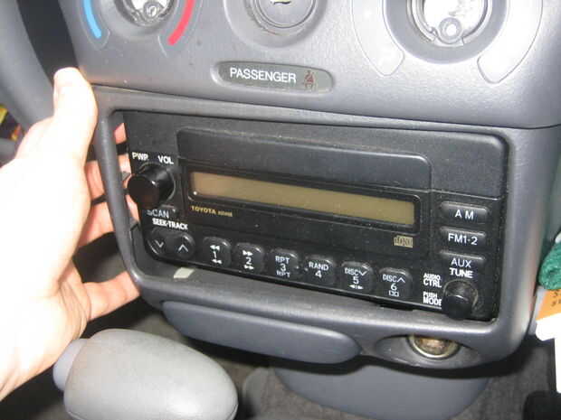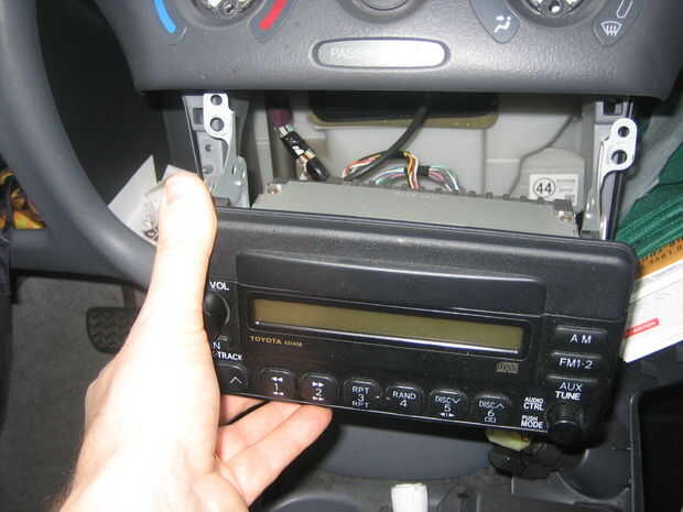 Saque las perillas desenroscar dos tornillos, tirar centro panel, panel de guarnición del tirón y dejar de lado, 4 tornillos, resbale hacia fuera de radio...