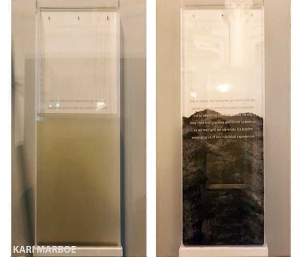 Práctica de Kari Marboe utiliza agua, arcilla, rectángulos y escribir para pensar en el almacenamiento de la memoria individual y pública dentro de una amplia gama de espacios. Sus obras han sido colocados en la Plaza de Latham, Oakland, CA, el Museo de arte de California Norte, Chico, CA, la entrada de la calle Bancroft del Berkeley Art Museum y Pacific Film Archive, Berkeley, CA y la cartelera de tienda de gofres, Pittsburgh, PA. Ella tiene también leerlas historias específicas de objeto agregado espacio Galería, Oakland, CA, exposición sur, San Francisco, CA, y Yerba Buena Center para las artes, San Francisco, CA. Marboe recibió su BFA de la Universidad de California de las artes y la maestría de la Universidad de California, Berkeley. Ella es profesora en el programa de cerámica en la Universidad de California de los artes y trabaja en proyectos específicos del sitio con galería de bloque de Oakland.