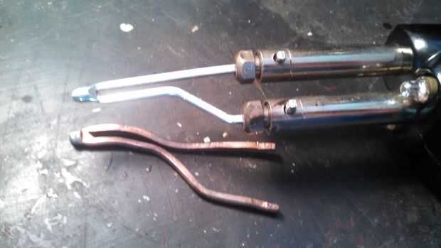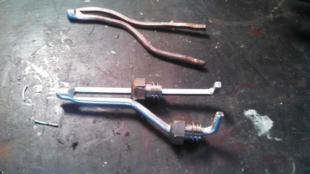 Las zapatas se deslizó fácilmente en la nueva punta, y luego estimar donde las curvas estaban en la punta vieja doblada ambos extremos en un ángulo de 90 grados para evitar que las zapatas de deslizamiento.