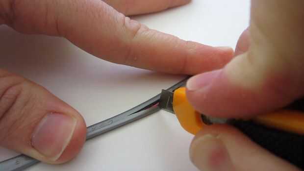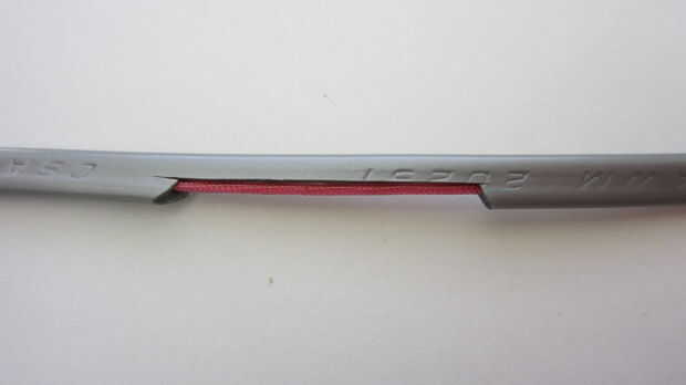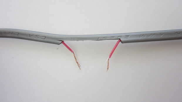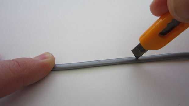 Para acceder al cable, usé un cuchillo afilado para cortar el centro de la cuerda de varias pulgadas. Entonces yo cortar el aislamiento de un lado para revelar el cable rojo. Cortar el cable rojo en el centro y me desnudaron el aislamiento en el cable en cada extremo cortado. Es donde conectamos la batería y el resistor.