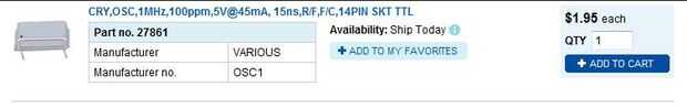 Aquí está la información 1 MHz reloj de Jameco:
