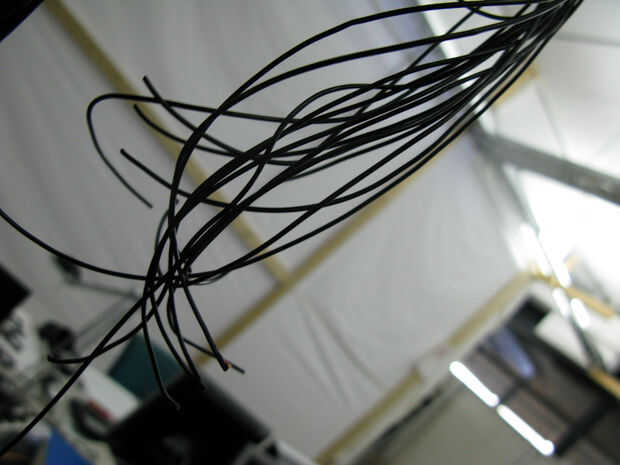 Desde nuestra interfaz iba a ser en el piso, y en un saco de boxeo, hicimos los cables aproximadamente 1m de largo (por lo que compramos a 25m de alambre de 0,5 mm por si acaso).