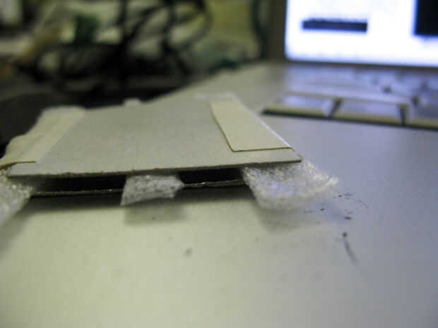 Asegúrese de que tienen 3 tiras de espuma, cada uno en bordes opuestos y uno en el medio para empujar las pastillas aparte. Y asegúrese de que hay suficiente espacio entre piezas de espuma que almohadilla voluntad fácilmente hacer contacto al presionar. Cortar la espuma para montar el sensor cuando termines.
