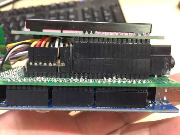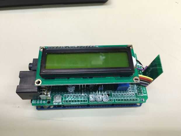Nota: la pantalla LCD se utiliza para la depuración. El jibberish que ves en la parte inferior es los comandos AT que se envían al módulo de Bluetooth cuando usted presiona un botón en el radio.