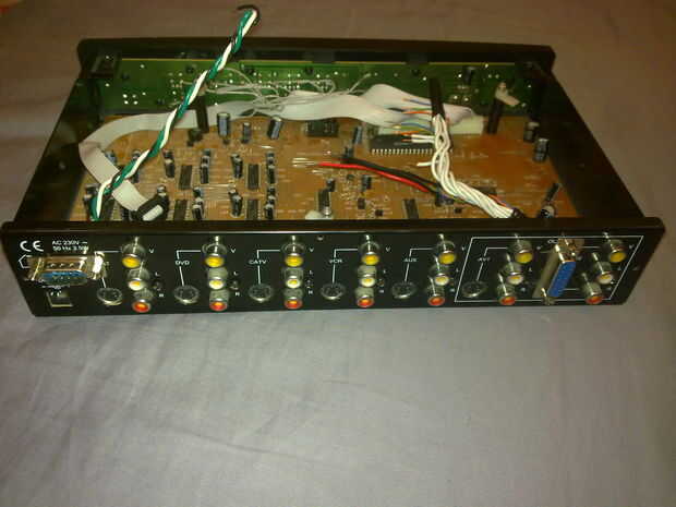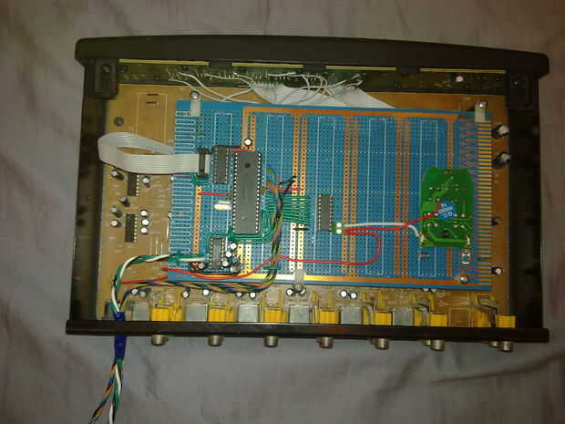 Debido a los muchos pines de I/O del PIC16F877, he decidido colocar algunos accesorios de los pernos libres. Lo primero que quería al control de la pantalla táctil es mi interruptor de AV, que selecciona las entradas de mi unidad principal, cabeza, GPS, PlayStation, cámara frontal y trasera. Cada interruptor de AV salida sólo necesidades ciclo para "Empujar el botón" que se realizó en el bucle principal cuando el PWM contador se restablece.