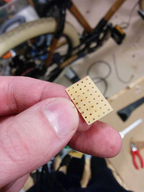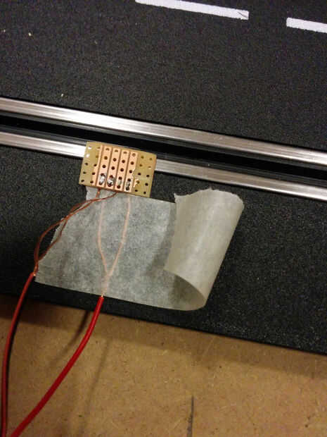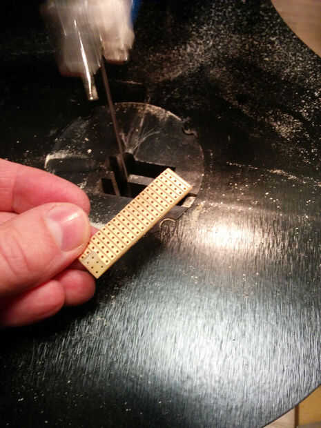 Mi segunda idea era delgada la placa perforada. Me llevó a cabo a la beltgrinder y terminó con una placa perforada de 0.5mm pero había no tenía tiempo para probarlo. Funcionaron perpendiculares a la ranura de las tiras y cuando volví a mi proyecto, decidí ejecutar dos cintas de cobre finos a lo largo de unos a otros.