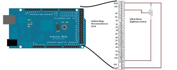 Los números del 1 al 20 que se muestra en la parte derecha del diagrama de conexión es el orden de número de pin en gráfico lcd. Entonces el número de pin correspondiente arduino también dado directamente a los números de pines del glcd.