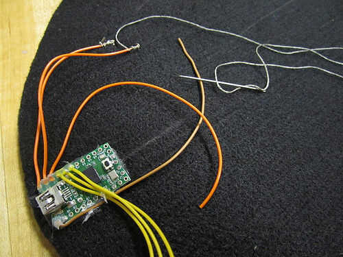 Asegúrese de marcar donde ha cosido con sus hilos conductores para que sepas donde están! En la capa inferior eres columpio individual entradas analógicas y no desea que uno toque el otro!