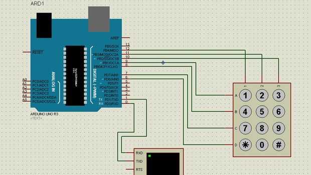 Teclado consisten en pin 7-en que 3 de las columnas del teclado y 4 de las filas del teclado.