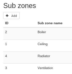 Es una sub división de una zona, no hay conexión entre las zonas y subzonas es decir, las zonas de cocina y cuarto de baño pueden tener la misma subzona de "radiador". Cada subzona tiene una identificación única que se utiliza para comunicarse con los nodos a través de VSCP.