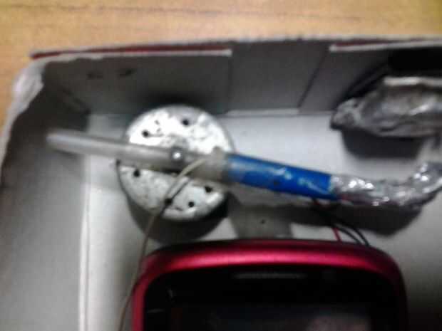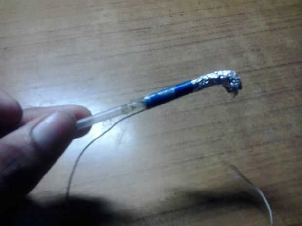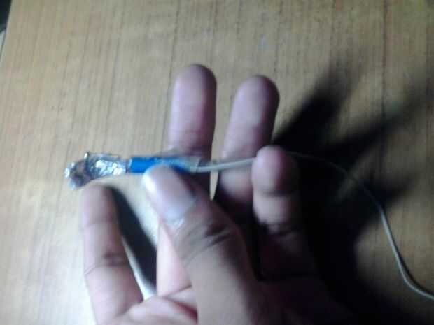 Cortar un trozo de alambre y conectar la parte de cobre en el martillo de foil de aluminio usando masking o cinta de electricista