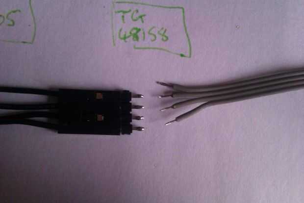 Romper 4 pernos de cabecera de SIL 0,1". Enchufe en algún puente que conduce a obtener el tamaño, y luego soldar un cable de cinta. Unos 15cm hará el truco.