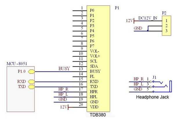 Para una conexión en serie entre los dos dispositivos utilicé construido en puertos serie a arduino pero una biblioteca como newsoftserial podría ser utilizada para liberar los puertos para usb > comunicación serial entre un pc y un arduino. Por favor tenga en cuenta que la imagen de adjuntas desde la hoja de datos TDB380 está un poco mal y debe de hecho conectar la clavija de arduino de RX en la TX TDB380 y y el pin TX Arduino al pin RX TDB380 como los datos transmitidos en el arduino TX debe ser recivido en la RX de TDB380.