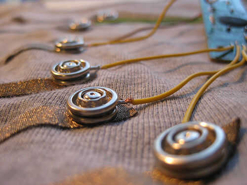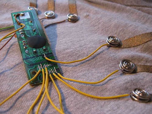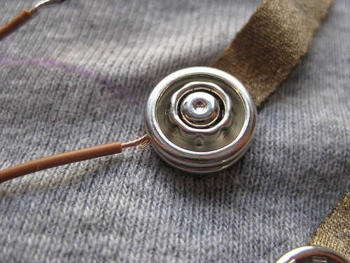 el Bra Musical reproduce música cuando se toca!Herramientas necesarias:-Conductor (strechable tela)-Fusible de interconexión (individual y doble cara - tu tienda de tejido local)-pequeño niquelado coser broches de presión-hilo conductor-espuma o fiel
