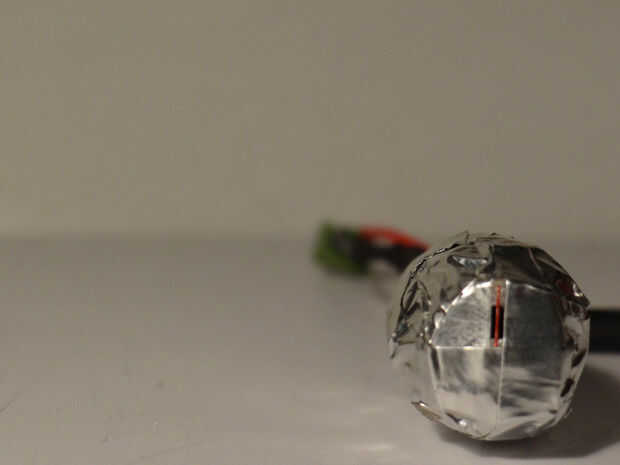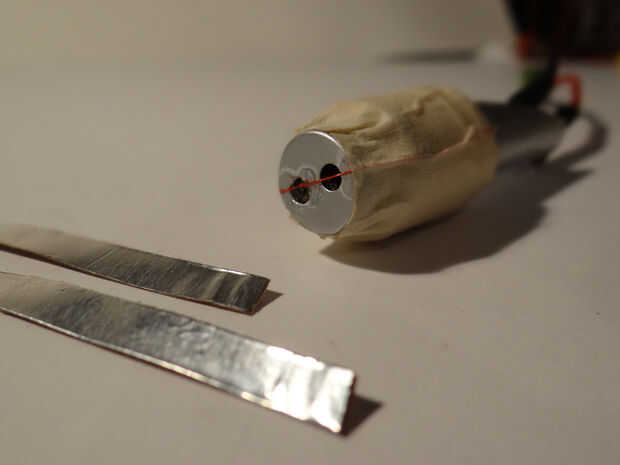 Una vez que las ranuras estén del ancho correcto, recto y paralelo, puede envolver la punta del láser con cinta adhesiva para fijar el conjunto en su lugar.