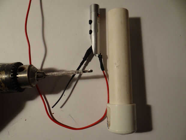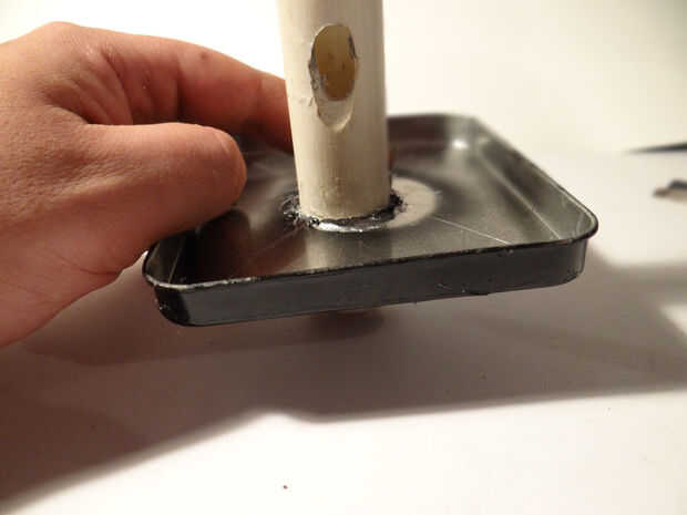 A continuación perfore un agujero centrado en el lado o al final de su proyecto. He utilizado una caja de altura a su lado para poder retirar la tapa y había montado el láser se para de fácil acceso. El agujero debe ser lo suficientemente grande para el tubo quepa pero no la tapa, que con un poco de pegamento, lo sostenga en su lugar.