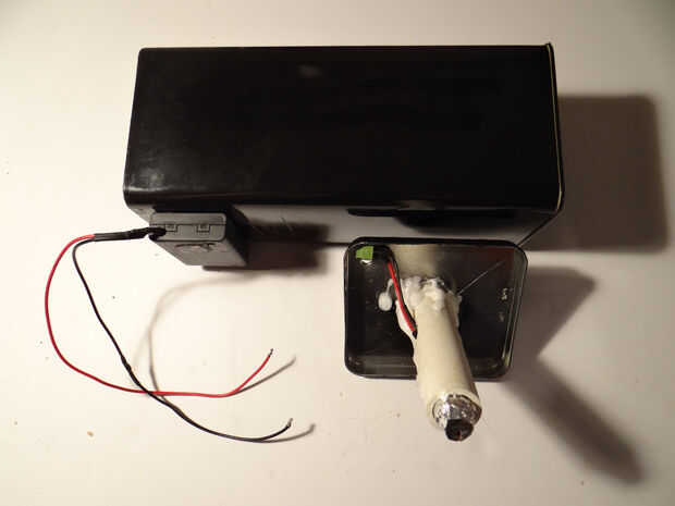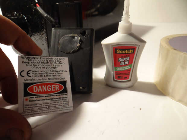 Tu Montura Laser debe ahora ser seco y del sólido, por lo tanto, introduzca los alambres de plomo para el láser en el PVC tire de ellas a través del orificio que ha perforado y empujar el láser detrás de él hasta que quede ajustado y recto.