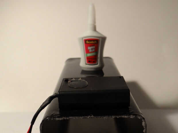 Pegue el soporte de la batería en alguna parte de su gabinete de proyecto que es conveniente y lo suficientemente cerca para el láser para los cables para conectar. Dependiendo de su recinto, deberá perforar un pequeño agujero para los cables en este punto también.