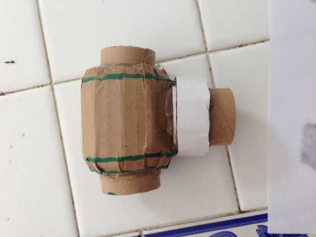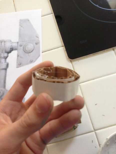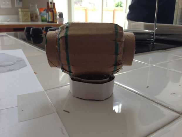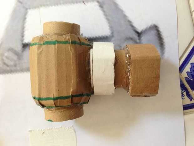 Enrollar una tira fina de cartón y pégalo en la parte inferior. A continuación, un pedazo de rollo de gasa, luego otro cartón uno.