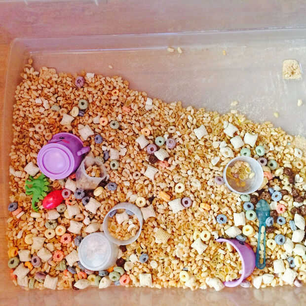 • Considere hacer un volumen muy grande de esto. La sal es muy barata. Tenemos una caja de almacenamiento superficial que hemos estado utilizando como un cuadro de "arena" que es pasta y cereales de sobra. Mi idea original era poner por lo menos cinco botes de sal en ella.