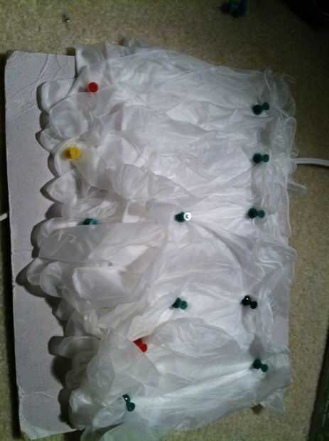 Ahora poner sus tachuelas a través de los guantes y el cartón