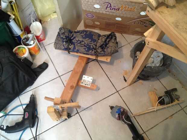 Quería ser capaz de desconectar la rueda de arrastre de la tierra. Puse el motor y el coche rueda sobre una bisagra que podría ser bajado a la tierra. Al conducir el carro de la rueda se tira en el suelo para conseguir más tracción. También puede extraer hacia arriba la palanca para empujar la rueda del coche en el suelo. También no sé si el volante casero y el motor podrían tomar mi peso como una carga de cojinete de rueda.