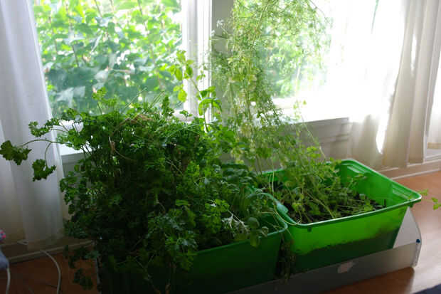 Con suficiente luz y regular de riego en el cuadro inferior las hierbas puede crecer rápido y listo para ser utilizado en 1-2 meses. Bueno con poner agua en el cuadro inferior en lugar de verter sobre las hierbas es que el suelo absorberá el agua que necesita mientras que el resto del agua puede permanecer en el cuadro inferior. Pero también regó las hierbas por encima de vez en cuando para asegurarse de que la parte superior del suelo sería obtener suficiente agua.