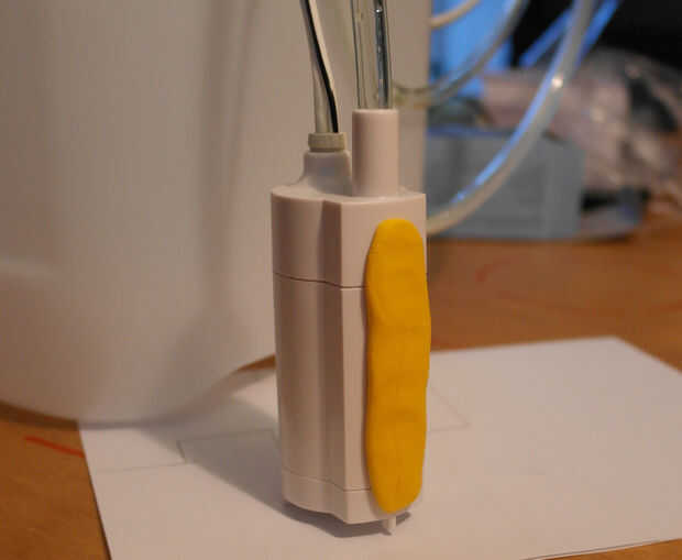 Tomé una pequeña regla conmigo a la tienda y mide el diámetro interno de la boquilla de la bomba en vez del diámetro exterior y entonces eligió un tubo con un diámetro exterior lo más cerca posible al diámetro interno de la boquilla de la bomba (ver figura 1). Al probar la bomba más tarde que me pareció que el flujo de agua alrededor de 1 litro por minuto, mientras que las especificaciones de la bomba dicen que bomba de 7,5 litros / minuto. Esto significa que puedo conseguir elegir la cantidad de agua que quiero salir de la bomba mediante el ajuste de la hora del temporizador.