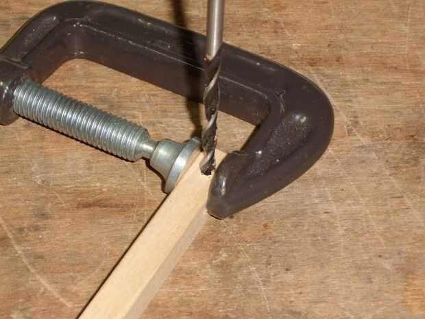 Coloque una pequeña abrazadera en c como se muestra para evitar la madera de la división. Un tornillo de banco con mordazas lisas funcionan bien, también.