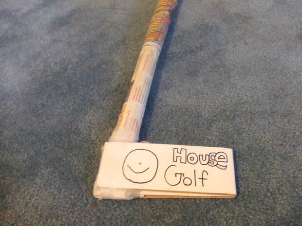 Así que decidí hacer algunos palos de golf de firmemente enrollada periódico, algunas de cartón,