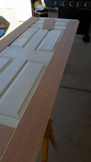 ya que esta puerta había biselado en endechas cortar mi exterior tablas de 6 pulgadas por la longitud de la puerta su hacen importante la parte de afuera de la puerta primero esto te dará la base para los paneles interiores