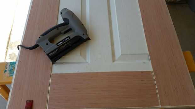 ya que las puertas son delgada uso los paneles en lugar de clavo pistola 3/4 de pulgada todo lo que necesita. los bordes de la puerta son sólidos pero núcleo interno es hueco, así que asegúrese de que al clavar te Utilice esto para su ventaja.