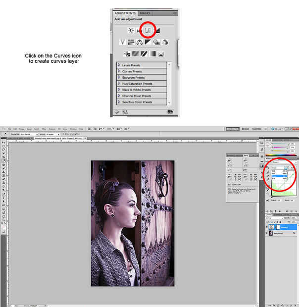 Ir a la paleta del ajuste y seleccione el icono de "Curvas", este se lleve una capa de ajuste curvas. Una vez que haya que abrir, ir a la curva que necesita más ayuda. En este caso, vamos a ir a la curva verde como el contrario de verde en la rueda de color, (según la luz, no de pintura), es magenta.