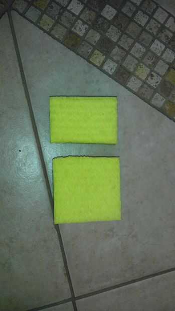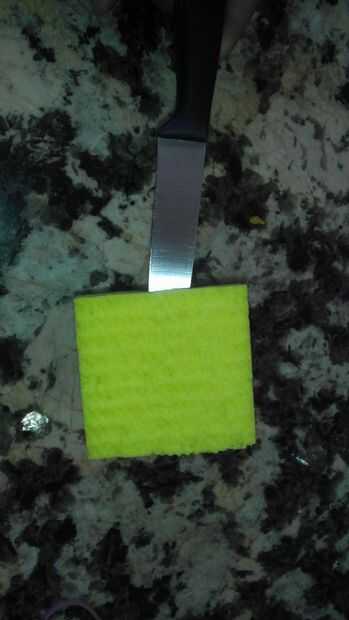 Recortar la esponja para caber en la parte inferior o el envase exterior.