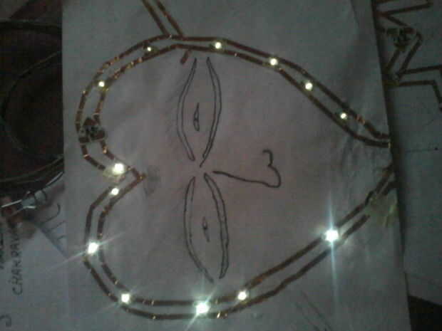 Una serie de 10mm LED colocados en una caja de madera en forma de corazón que flash utilizando un timer 555 con velocidad ajustable intermitente alimentada por una batería de 9 voltios. Tengo esta idea, porque yo estaba pensando en un regalo para mi