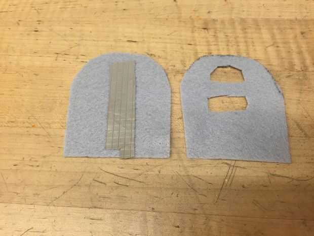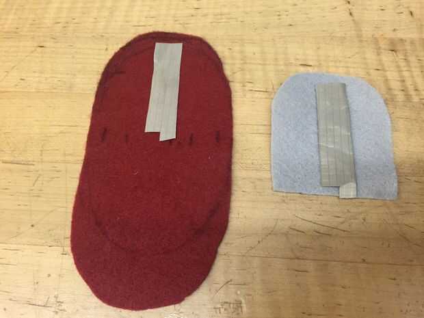Cortar a la tela conductora en tamaños adecuados con pequeñas pestañas en la parte inferior para la conexión fácil con el Lilypad más tarde.