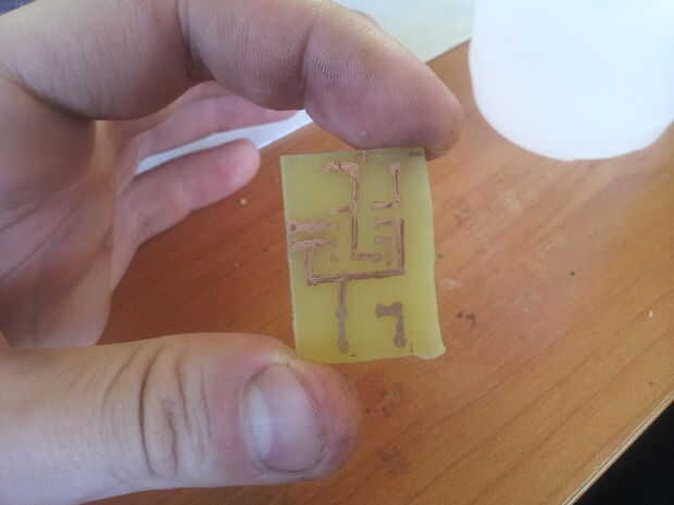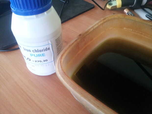 - Una vez que el diseño es en el tablero, colocarlo en un recipiente con agua y cloruro férrico