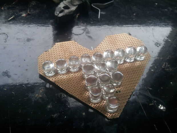 En el trabajo mis trabajadores co y yo fuimos la tarea de hacer luz por placas para aprender a código rgb de led. Yo, como siempre, quería tomar las cosas un paso más y hacer algo de fantasía. Con mi obsesión de corazón extraño, decidí hacer una plac