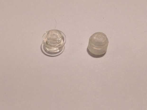 Tomar 2 bloques de Lego transparentes pequeña y moler lejos del borde. También fui encima con papel de lija para una mirada helada. Esto contribuirá a mejorar la visibilidad de los leds. Pegar estas piezas sobre el led, y el cuerpo se hace!