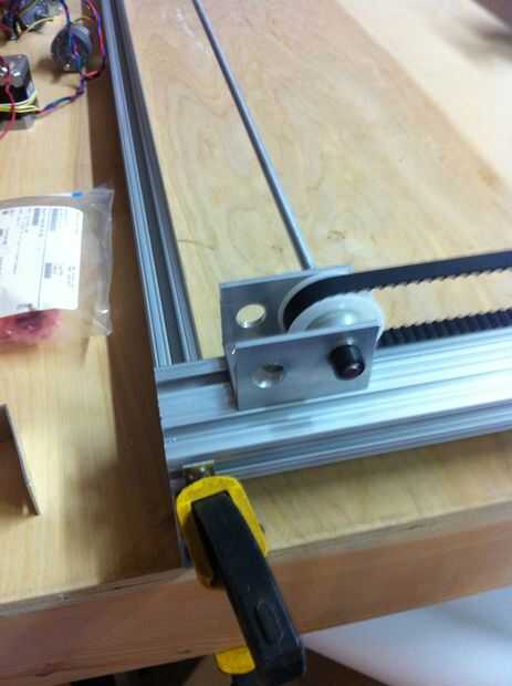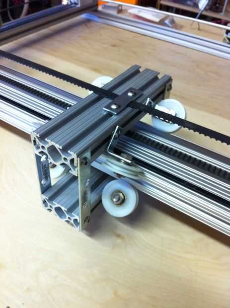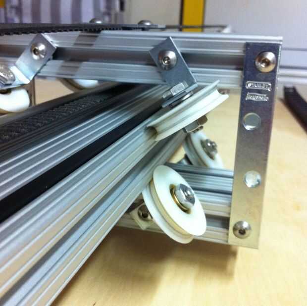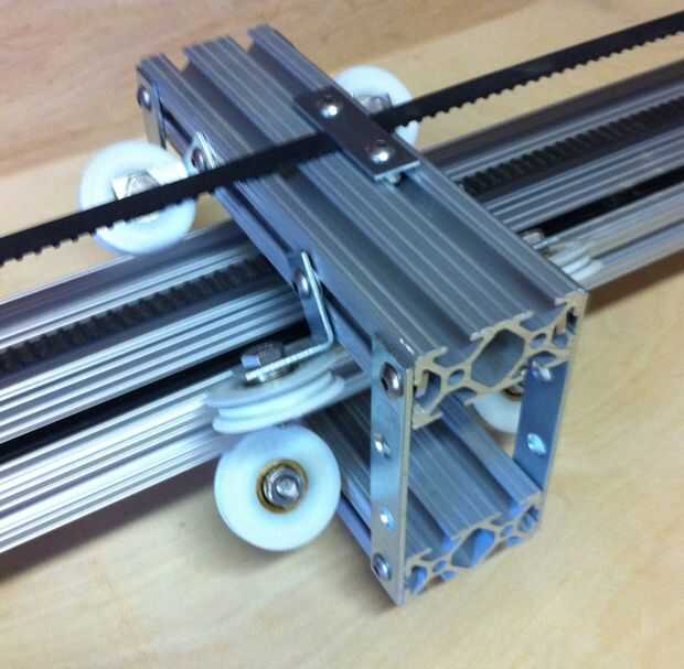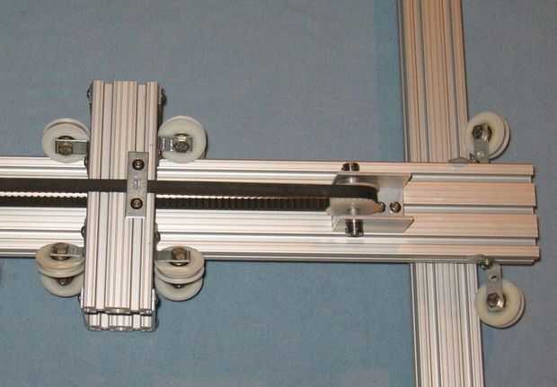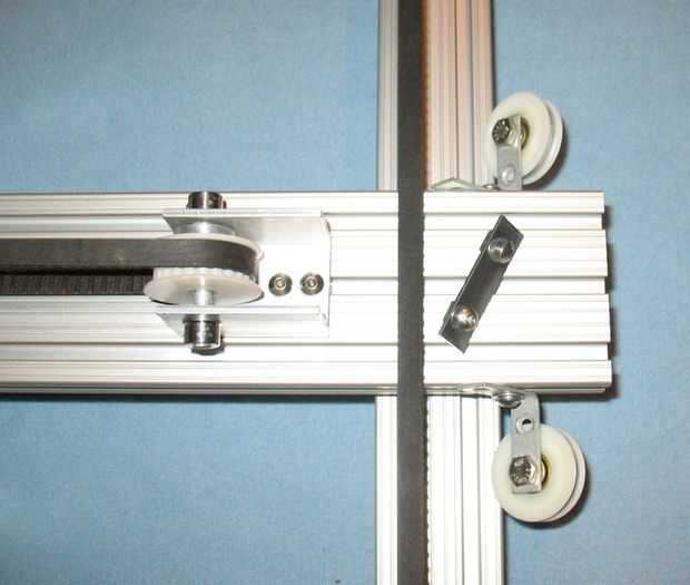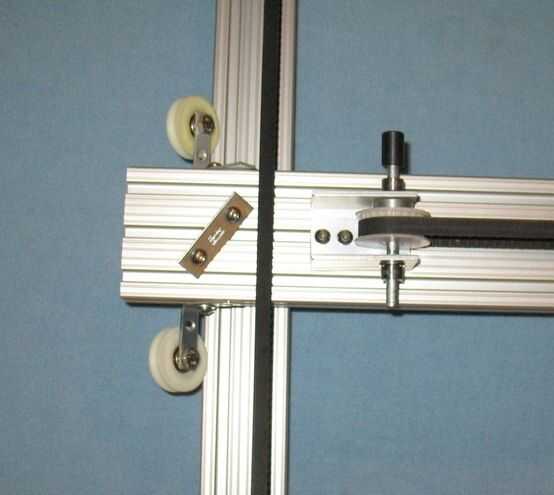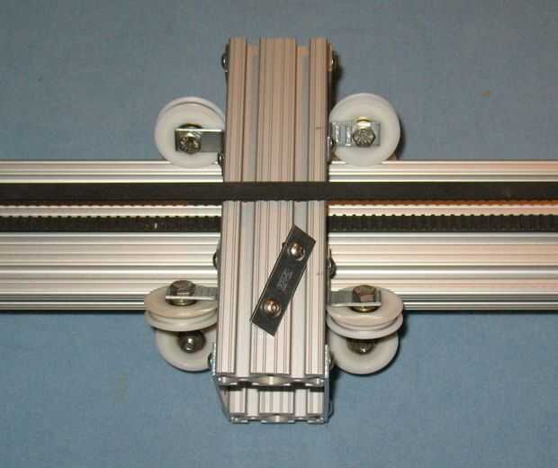 Para el eje de la Y, centro de los dos principales soportes en el eje de Y 1 x 3 - hacer un ajuste flojo, luego medir la diferencia en los extremos y céntrela. Probablemente se pueden establecerles sólo por el ojo desde un posicionamiento preciso no importa mucho. Suponiendo que no pones la correa a través del carro del eje Y antes: para obtener el cinturón a través del carro del eje Y, usted tendrá que desenroscar una placa de 4" y un rodillo, luego fije detrás, seguido del segundo 4" placa y rodillo. Se recomienda hacer uno a la vez para prevenir que se aflojen el carro piezas demasiado.