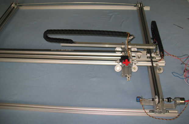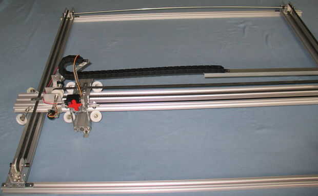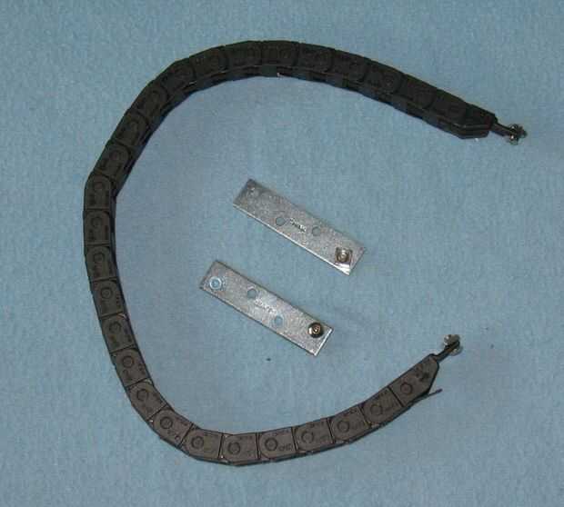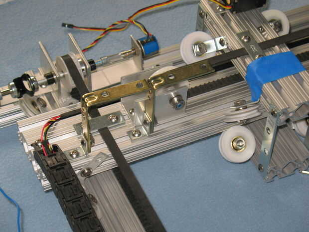 El operador de cable que utilizamos fue que el McMaster-Carr # 55835 K 432 y correspondiente montaje soportes 55835K 3. Tienes que comprar en 3 pies de largo, que cuesta unos 20 dólares, por lo que para el eje X e Y, el costo es aproximadamente $50 - que no podía absolutamente pasar con solamente 3 pies. Compramos dos sistemas de los clips del final.