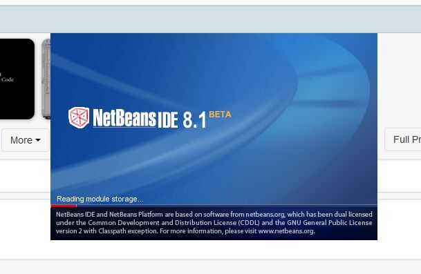 -en primer lugar permite ejecutar la aplicación de Netbeans. Espere un momento hasta este pop-up final.