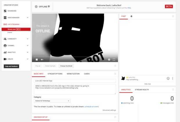 Hay un montón de servicios de streaming vivo ahi, pero yo he utilizado el servicio de Live Streaming de YouTube para este proyecto.