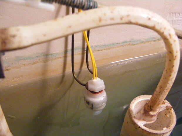 Con el inodoro sin agua, el interruptor debe estar abierto, vaciar la taza del baño debe cerrar el interruptor, y finalmente como rellena el tanque el interruptor debe volver a abrir.